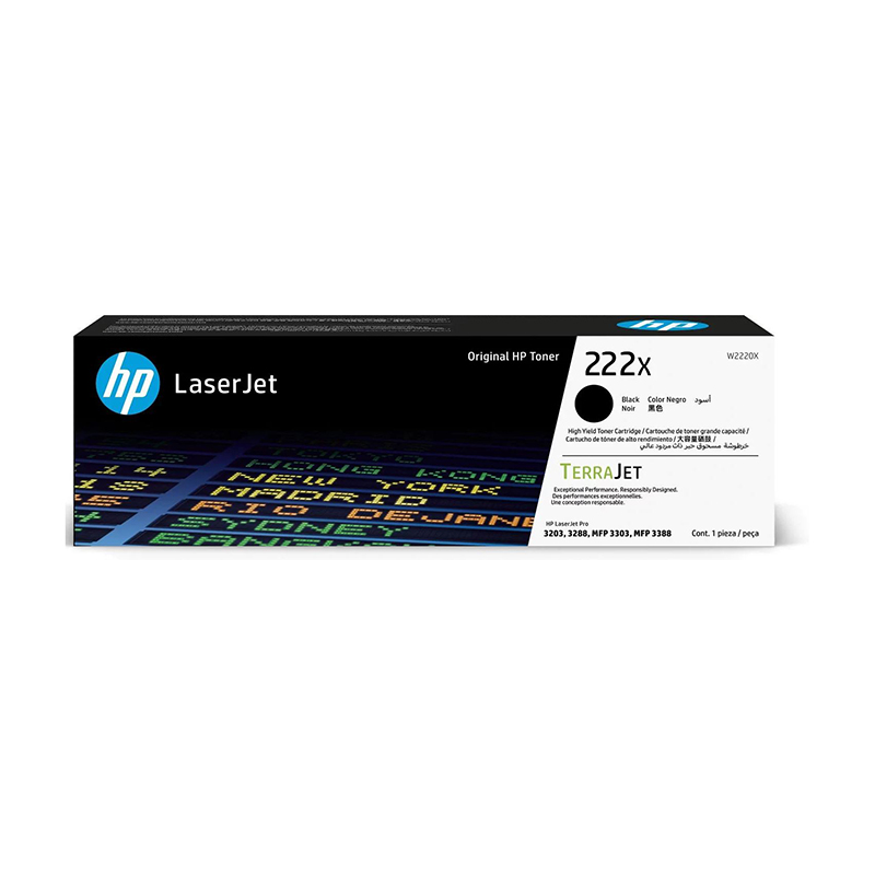 Черный картридж HP W2220X (222X) относится к лазерному типу печати, а его ресурс при заправке составляет 3500 старниц при 5% заполнение листа.